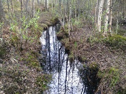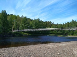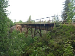 Am folgenden Tag ging es weiter Richtung Pajala (Schweden). Vor der Grenze nach Schweden, haben wir aber noch angehalten, denn es stand noch eine weitere Wanderung in Finnland an. In Kolari (Finnland) haben wir den Wohnwagen abgestellt und sind nur mit dem Auto nach Teuravuoma gefahren, das waren ca. 15 Kilometer. Von hier aus wollten wir eine Teilstrecke eines alten Postweges gehen, der durch das Moorgebiet Teuravuoma Kivijärvenvuoma führt. Leider kamen wir nur ca. 1,5 Kilometer weit, ab da ging es für uns nicht mehr weiter, da die Holzplanken so zerstört waren, dass ein weiterkommen nur mit Gummistiefel möglich gewesen wäre. Aber dann hätte man nicht gewusst, ob man evtl. im Moor steckengeblieben wäre. Also war das nichts und wir sind wieder zurück zum Auto und zum Wohnwagen zurückgefahren. Das war sehr ärgerlich, denn laut Wanderführer wäre es eine interessante Wanderung gewesen. Nun gut, nutzt nichts, also sind wir nach Pajala auf den Campingplatz gefahren. Auch heute war es regnerisch.