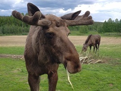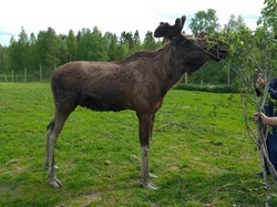 Am Tag drauf ging es nach Vännäs auf den Campingplatz Vännäs Camping och Bad. Hier konnten wir am Nachmittag vom Platz aus noch eine kleinen Spaziergang machen. Am nächsten Tag sind wir nach Bjurholm gefahren um eine Wanderung entlang des Flusses Öreälven zu machen, sehr schöne Gegend. Zurück am Auto haben wir zunächst unsere Butterbrote gegessen und uns dann entschieden noch zu der 10 Kilometer entfernten Elchfarm (Älghus) zu fahren. Nachdem wir unseren Eintritt bezahlt hatten, wurde uns ein ca. 18 minütiger Film in deutsch über das Leben des Elches gezeigt, dann ging es weiter in einen Museumsraum, dort gab es noch einmal alles über den Elch zu sehen. Dann durften wir in das Gehege der Elchkinder. Na die waren vielleicht süß. Eins hat mit Uli total geknuddelt. Zu den großen Elchen durften wir auch, aber nur mit einem Guide. Das sind ganz schön imposante riesige Tiere. Aber auch die durften wir anfassen und ich habe einen Elch gefüttert, mit einem riesigen Zweig mit Blättern. Tagsüber war es heute wieder einmal ein Sonne Wolkenmix, abends Regen.