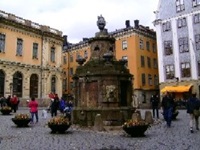 Fotos gemacht. Einen ausführlichen Bericht über das Abba Museum findet ihr auf meine Abba Seite. Soviel sei hier gesagt, es war super interessant und für jeden Abba Fan empfehlenswert. Anschließend waren wir noch im Shop und haben Souvenirs vom Abba Museum gekauft. Der Regen hatte aufgehört und wir sind dann zum dortigen Friedhof, in der Hoffnung das Grab vom Abba Manager Stikkan Anderson zu finden. Leider Fehlanzeige, wir haben es nicht gefunden. Dann sind wir zum Junibacken gegangen. Dies ist ein Museum, geeignet für Familien mit Kindern. Denn hier dreht sich alles um Astrid Lindgrens Geschichten. Von Pipi Langstrumpf, Michel aus Lönneberga, Kinder aus Bullerbü, Karlsson auf dem Dach usw. Im Museum waren wir nicht drin. Dort neben dem Museum steht ebenfalls ein Denkmal von Astrid Lindgren, das wollten wir uns anschauen. Kurz bevor wir die „Insel“ Djurgarden wieder verlassen, gehen wir noch zu Mittag essen. Gut gestärkt schlendern wir am Wasser entlang zur Altstadt von Stockholm, auf die „Insel“ Gamla Stan. Am Wasser entlang liegen viele Boote, große und kleine. Auch hier kommen wir wieder an großen interessanten und alten Gebäuden vorbei. Wir laufen kreuz und quer durch die teilweise engen Gassen in der Altstadt. Schließlich kommen wir zum Schloss. Hier werden jedoch nur noch offizielle Empfänge abgehalten. Für eine Besichtigung sind wir zu spät. Das Schloss selber macht einen sehr schlichten Eindruck von außen. An einem Platz haben wir Pause gemacht und Kaffee und Kakao getrunken. Dann haben wir uns zurück auf den Weg zum Hotel gemacht. Bei dieser Gelegenheit haben wir uns die Fußgängerzone, die gleichzeitig auch Einkaufsmeile ist angeschaut.